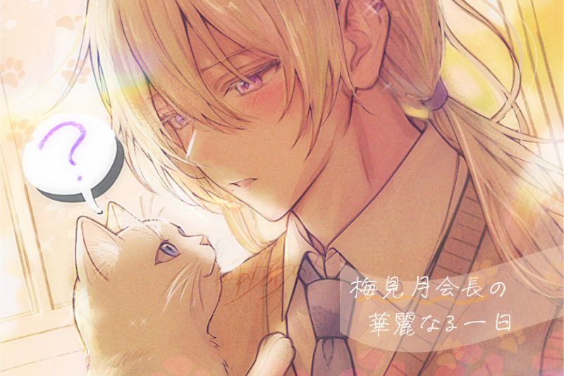 梅見月会長の華麗なる一日梅見月会長のビジュアルに惹かれたこと、そして猫が好きなこともあって、 「これは絶対好きな作品だ!」と確信しながらプレイさせていただきました✨ この美人さんが子猫を抱っこして校内を歩いている姿を想像するだけで、とても幸せな気持ちになります。 蝶たちもきっと同じ気持ちなんだろうな……! @ネタバレ開始 個性豊かなイケメンたちの登場に圧倒されましたし、差分の多さにも驚きました。 どの子も本当に“いい子”で、DKのきらめきが眩しい……尊さに涙が出そうでした。 ゲームのシステムも素晴らしくて、子猫の手を動かせたり、訪れる場所の順番によって出会えるキャラが変わったりと、「すごい~!」の連続で感動しっぱなしでした。 いちばん好きなシーンは、子猫に見つめられて「意外と俺はチョロいんだぞ……」と照れている会長のシーンです。 破壊力が本当にすごい……。 自分で「チョロい」なんて言っちゃうところに、普段は完璧な会長の“高校生らしさ”がにじんでいて、とても好きです。 この姿を見たら、桜夢さんだけじゃなく、たぶん全員が「かわいい」と言うと思います、会長……。 EDムービーの、キャットフードをぶちまけてしまう会長も可愛くてお気に入りです。 このあと絶対「ああもう!」と言いながら拾ってるんだろうな……と思うと、キュンが止まりませんでした💖 おまけも大変楽しませていただきました! 第一夜では一人称が「僕」、第二夜では「俺」になっていたのがとても刺さりました。 会長が“素を見せられる相手”が増えたんだ……!と、どの立場からの目線なのか自分でも分からないのですが、心がぽかぽかしました。 写真集での怒涛の会長スチルも堪能しました。 どれも麗しかったのですが、黒縁眼鏡姿は可愛すぎて……普段とのギャップにテンションが上がりまくりました( ;∀;) 子猫ちゃんと会長のボイスも本当にぴったりでした。 (子猫ちゃんは本物の猫ちゃんの音声かと思っていたので、声優さんだと知って驚きでした!かわいい~!) @ネタバレ終了 素敵な作品に出会えて幸せです。 本当にありがとうございました🌸 -