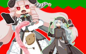 黒聖夜のうた「女の子がカワイイ~!」と思いつつプレイし、「先輩の笑顔美人カワイイ~(だが先輩はニコちゃんの旦那)」となりました。 @ネタバレ開始 以下箇条書きでオンタイムメモした感想なのですが、まとめられる気がしないのでそのまま投稿します。 ・「じゃがいも、木炭、モツ!」の勢いと右下の先輩かわいい…… ・「どう見ても悪い子だとわかるあの子」、路上で一人宴会しとる!!! ・からの空飛ぶじゃがいも、木炭、モツ…… ・食用のモツなんだ…… ・ママさん呼びは先輩だけなのか……(先輩かわいいな……と思ったらニコちゃんもそう思いますか、わかりみが深い) ・起きろ、死ぬぞはどちらかというと凍死しそうなときのやつ!!! ・モツでぶったの!? ・タバコポイ捨てに厳しいニコちゃん…… ・地顔……(微笑むとめっちゃ柔和美人に見えるから大体三白眼のせいじゃなかろか……先輩) ・レスバに対して床にぶちまけすぎぃ!→モツも追加されちゃった……お掃除が大変だ…… ・じゃがいも発注かけてるんだ…… ・なぜか光ってるんだ…… ・大統領の話、脱線著しい…… ・ポイ捨て野郎またいんのか、お前wwww ・老け顔を気にしてる先輩かわいい…… ・ニコちゃんの「えへへ」に対して、「?」しながらも「ふふふ」って返してくれる先輩優しいし、かわいい…… ・>>>突然の醜い争い<<< ・トルエルちゃん可愛いけど……可愛いけど、その姿……? ・「先輩に女いたらどうしよ」のニコちゃん、かわいいお顔が怖い、怖いよ…… ・やっぱり、トルエルちゃんえらい人のとこの子だった……(そりゃ上の意向に対して解像度が高いわな)※ノーマルクリア ・渾身の>>>言っちまった!!!!<<< ・冷や汗だらだらで返事に困ってぺしょっちゃった先輩かわいい…… ・スープないから、お湯……悲しい…… ・大統領は全部お見通しですか…… ・オフの先輩のポニテとメガネ可愛い…… ・大統領wwwww「お兄ちゃん許しませんよ」wwwww ・大統領、雪だるま作っちゃった、カワイイ ・先輩……それは……ぺしょっちゃうよなあ、腰抜かしちゃうよなあ、「不幸なことをしてしまった」と思ってたのに、それはニコちゃんにとって「幸せ」で、つまりは「正解」だったってわかっちゃって、本当に「許された」んだもんなあ…… ・クソ度胸www……ん、歴代2人目……? ・べそべそ先輩かわいい…… ・先輩、そのタイミングはクソ真面目過ぎる、ニコちゃんの心の準備ができないよ ・角が伸びててうれしい先輩かわいい……(ここからオマケ見ました) ・>>>栄えある<<<1人目。それは、大統領、絶対に怒れないよねえ。 ・>>>>未成年だから<<<<、逆に言えば成人すれば余地があるってコト!!! ・あせあせ先輩かわいい…… ・(ダメ)のニコちゃんのこの顔である。 ・交際の普通がわからない&論理的思考強めを逆手にとられて距離感の外堀をせっせと爆速で埋められる先輩……ツヨクイキロ 総評:ニコちゃんも先輩もカワイイね、尊いね……先輩、外堀埋められたし、ちゃんと連れてきた責任も取らなきゃいけないからね。ニコちゃんは強い子だ……先輩も、強く生きろ…… しかし、ブラックサンタの意義や大統領の経緯、そして大統領パートのことを考えると、懲らしめるべき人数は同時に助けるべき人数なのかもしれませんね…… @ネタバレ終了 ブツを「てやー!」するニコちゃんをメインにFAを書かせていただいたのですが、絵柄とモザイク処理の関係でモツが逆に妙にリアルになってしまった気がする…… とても尊い関係の二人の物語をありがとうございました! -