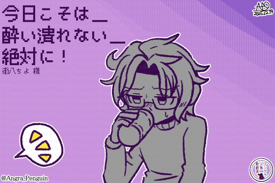 今日こそは_酔い潰れない_絶対に!序盤に度数高めの酒を飲ませるな~~~~~~~~!!!!! お酒で酔いつぶれないよう水を飲みながら頑張る、というゲームです。 攻略ページを見ると分かりますが凄い緻密な作りをしています 出て来るお酒はランダムですがある程度種類を覚えていると何とかなります。 また再挑戦がしやすい作りとなっているので次こそは!と何度もプレイしたくなる作りにもなっています。 @ネタバレ開始 俺は乱数に敗北をしてめっちゃやり直しました もう有馬君の肝臓はボロボロや! 個人的なコツとしては一番最初に星1のピンクと緑のお酒が来ないことをお祈りするのが良いと思います 黄色はなんか酔わないけど残り2つはなんか凄くゲージ溜まっちゃうぞ! でも合間合間に挟まれる二人の可愛いドット絵が沢山見れるから最高です 酔っ払い有馬君ともしや…?!と思わせる辰巳君が溜まんねぇんだ。 @ネタバレ終了 リプレイ性・ゲーム性共に高く短い時間でサクッと遊べる名作です 君もお酒を片手に最後まで話を聞こう!(?) 素敵な作品をありがとうございました! -