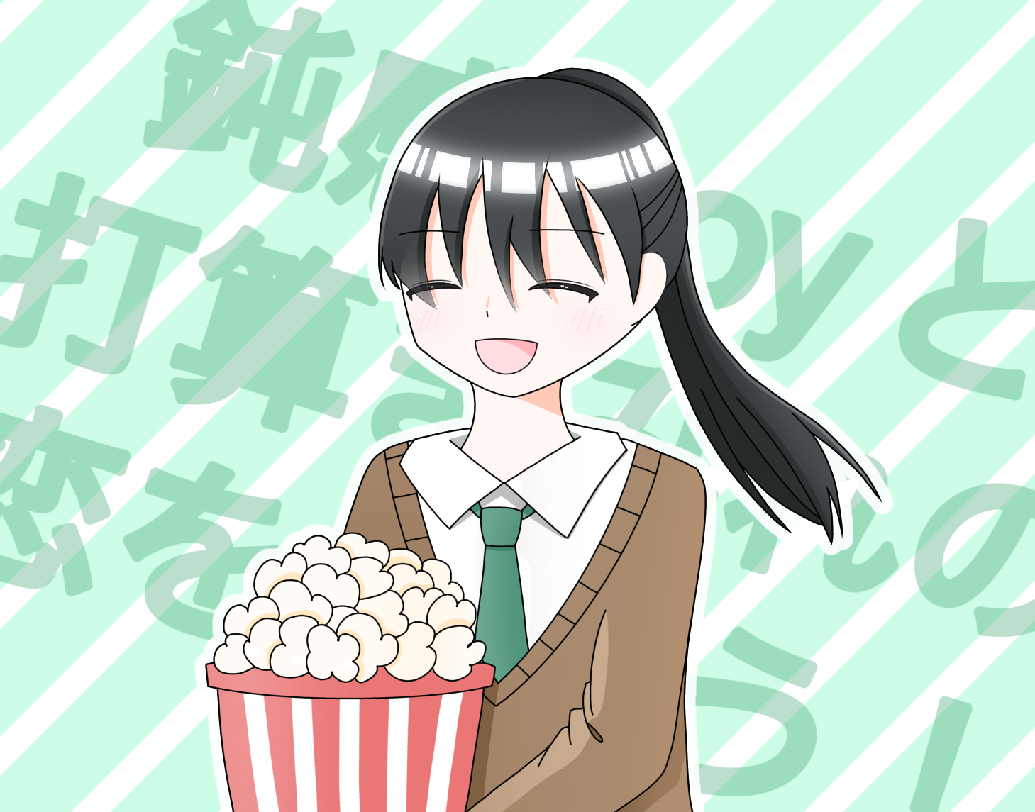 鈍感Boyと打算まみれの恋をしよう!フェス開幕の為再掲失礼します! 以前FAをお送りしましたが、全く同じのを再掲するのも物足りないと思いニッコリ差分をお送りさせていただきます。(ポップコーン、かよちゃんと仲良く食べるんだよ…!) コミカルもありつつほっこりな青春乙女ゲー、楽しかったです! -