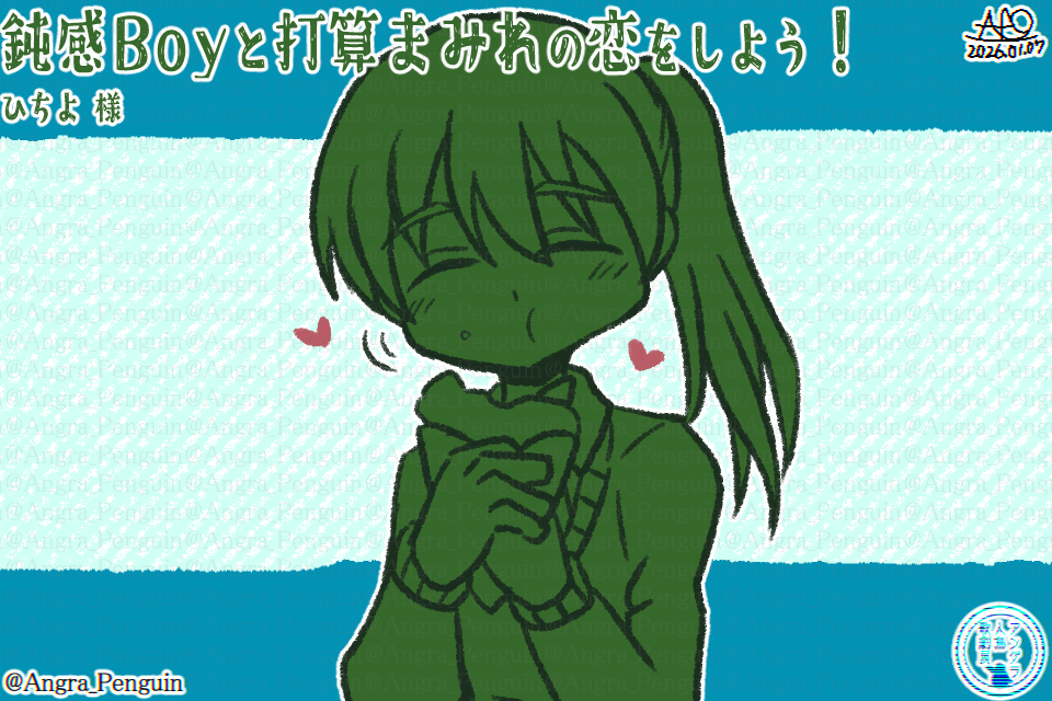 鈍感Boyと打算まみれの恋をしよう!鈍感キュートボーイなひちお君にアタックをしかけて恋を成熟させよう!という作品。 アタックはしかけるけどあくまで告白は相手からして欲しい というのが可愛くって好きです 欲張り主人公め! そして何が良いってひちお君がすっごい可愛い 手厳しく言っても打算塗れに言っても愛らしく優しい返答をしてくれるのが嬉しいです。 @ネタバレ終了 個人的には食べ物絡みのひちお君がほんま可愛くて好きです ハムスターを彷彿とさせる愛らしさすぎる(映画放送前にポップコーン食べきってたらどうしようとか若干焦ったのはここだけの話) 何よりどのエンドを選んでも暖かい気持ちになれるのが良い 二人は出会った時点でソーハッピーな関係なんやなって……。 @ネタバレ開始 鈍感なひちお君と負けじと奮闘する主人公のラブコメ具合が魅力的な作品です 君もひちお君と美味しい物を食べよう! 素敵な作品をありがとうございました! -