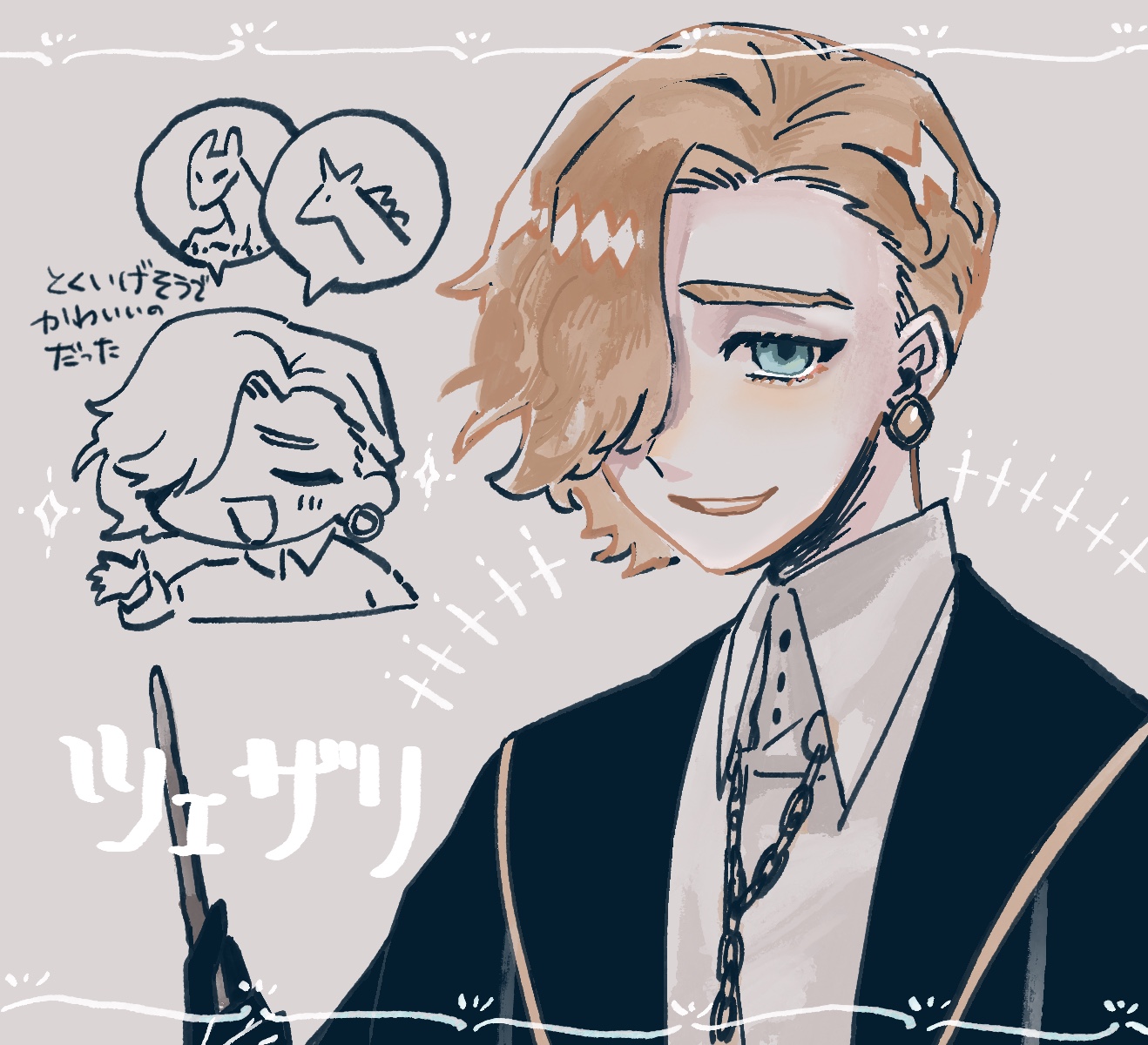 ツェザリ主人公を振り回すツェザリに色々な意味でドキドキハラハラしつつ、ひょんなことから先輩と関わることになるシチュエーションにもときめきながらプレイさせていただきました! 実力があって変な振る舞いを許されている人が大大大好きなので、ツェザリのすごエピソードが出るたびに手を叩いて喜んでおりました。最高すぎました… @ネタバレ開始 都合のいい助手を手離したくないのかな…と思っていたら、どっこい初対面ですでに独占欲の萌芽みたいなものを感じさせられてウオォォォ!となりました いきなり宝石をプレゼントしてくるエピソードも、変といえば変なのかもしれませんが、人より魔法生物との付き合いのほうが多そうなツェザリにとって精一杯「人間の女の子」の気を引こうとした結果かもと考えると本当に可愛い人だなと思います(心の底から瞳の色のことしか考えていなくても全然不思議ではありませんが…😔) あとなんらかの魔法生物の求愛行動などを参考にしていませんか??とも…ツェザリならやりかねないと思ってしまっております😂 追加エピソードもありがたく…ツェザリの世界観が本当に好きなので、まだこの世界の続きを見てもいいんですか!?と大感謝でございました…🙏 追加エピソードでは、主人公がきちんとツェザリに意思疎通できて感無量です。帰ろうとするのに何度もツェザリのそばに戻されてしまうところ、ツェザリの「どうすればいいか分からないけどとにかく離れていってほしくない」というような気持ちを感じてヷーーーーッ!!!!と喜んでおります。 それから、「もしかして続編orスピンオフありますか…?」と思わせる演出、本当に本当に楽しみにしております。厳しそうに見えて生徒のことをよく見ている教授と主人公にとっても穏やかにいられそうな同級生、攻略対象になるにしても引き続きサブとしてご活躍するとしても、また会える日を待っています!(とはいえご負担にならない範囲で、ご無理のないよう!)(急かす意図ではなく需要あります!!!!の主張です) @ネタバレ終了 世界観もキャラクターもストーリーも大好きな作品で、これからも折に触れて思い出すような可愛らしくいじらしい恋物語でした。 素敵なゲームをプレイさせていただきありがとうございます! -