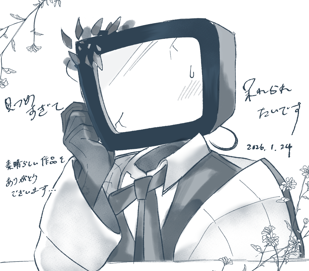 おねがいやめてめちゃくちゃ引き込まれる作品でした! @ネタバレ開始 タイトルのタブのところ?に【danger】と書いてあって、これから何が始まるんだろうとドキドキしながらプレイを開始しました。 タイトル画面の緑のかたと赤文字に怖さを感じ、でも、もうここから出ることはできないと感じる選択肢に、閉鎖空間にいるかのような気持ちになりました。 本編を開始すると、扉が開く音が聞こえるのも良い……。 上の【やめない】で本編を開始したあと却下を押しタイトル画面に戻ってきたのですが、下の【やめない】だとどうなるんだろうと疑問に思い下を選ぶと、めちゃ怖ロード画面が! 赤文字に震えましたが、やめません……! めちゃたくさん注意事項があって丁寧!からの、「クソ多い注意事項に飽きたら〜」で笑いました! まだまだ同意しますよ!と思っていたら、「注意事項は100個あります」で倒れました。笑 何が書かれているのか気になりすぎます! からの次のテキストがおちゃめ。笑 「本当はその気もないのに〜」も好きです。笑 注意事項というよりも、もはやこちらと会話していて面白すぎます。笑 待ち時間があるのも笑いました! 物価は本当に高い……。 心からの同意を押しました……。 作品の注意事項にめちゃくちゃ色んな要素が含まれていて、いったいどんなお話なんだとドキドキ……。 【パクリ】でめっちゃ笑いました! メニュー画面も好きすぎる。笑 セーブ等にカーソルを乗せると力強く【やめて!!】と表示されてにっこり。笑 タイトルにカーソルを乗せた時だけ【おすすめ!!】なのも好きです。笑 セーブやロード、バックログにも、めちゃやめてほしい気持ちを感じられます。笑 常に注意が出ていて笑いました……! 亀さんのアニメーション好きすぎる。笑 お礼のところで【詐欺】と表示されてニコニコしました。笑 からの、どえっち展開(?)で!?!?!? びっっっっくりしました……!笑 これは確かに注意事項に間違いなしです!! お魚のイラストもめちゃくちゃ上手い!! 舞いに【時間の無駄】と表示されるのが辛辣で笑います! 乙姫様かわいい&セクシー! 注意事項の枠からはみ出している【みているこっちが〜あとがき】に口角上がりまくりです。笑 あとがき、面白すぎてむせました……。笑 なんだか懐かしい気持ちになります。笑 波や浦島さんの動きも良い〜! めちゃ滑らかに動いていてすごすぎます……!! 波の音だけが聞こえるのも素敵です。 か、亀さん!? まさかのここでこの注意事項で倒れました。笑 【忘れてた】も好きすぎる。笑 玉手箱を開けるかどうかで、却下を押すと無限ループして笑いました! 【心はおばあさんです】面白すぎませんか!?笑 笑いすぎてむせ、口角が限界まで上がり戻らなくなりました……! オチの音ににっこり。 あの方がここで登場するとは……。 けれど、泣いていらっしゃる&暗い水の底に沈むような雰囲気にドキドキ……。 そして、タイトル画面がえちえちになっていて!? セクシーすぎるのですが!? (と、セクシーショットに正気を失っていたのですが、冷静になってから見ると、【おねがいやめて】と向こう側から書かれていて、そういうこと……?と震えました……) 血飛沫と、鳴り続ける注意の音が怖すぎる……。 えっ……。 激やばなことになっていて息止まりました……。 ひえー!ここから出してー! なんとか脱出しようと色んなところをクリックしたり再起動したりと頑張ったのですが、永遠にここに住むことになりそうです……。 住民票をここに移します。 これが、やめなかったから起きた結果なのか……。 ハッピーエンド多数、ゲームオーバー1つ……というノベコレさん概要欄のエンド表記に、どこかでやめておけば最後のこの結末を迎えることはなかったのかもしれないと、複雑な気持ちになりました……。 もうメニュー画面の文字等のことも笑えません……。 解説記事も楽しく拝見しました! 没の画像がたくさんあって驚きました! パターンがめちゃくちゃいっぱいある……!すごい! 解説を読んで、更に作品に深みが増し、とても良かったです。 僭越ながら、FAを描かせていただきました。 @ネタバレ終了 素敵な作品をありがとうございました! -