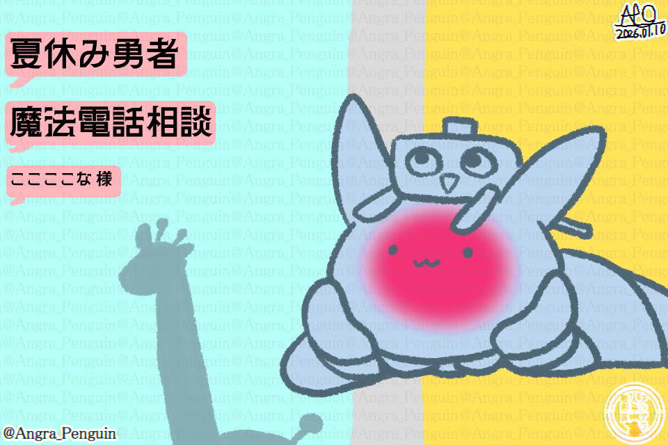 夏休み勇者魔法電話相談チャットで勇者様の相談に乗ろう!という作品。 びっくりするくらい質問の内容がカオスです 何だこの質問…と思った次の瞬間何だこの質問…が飛び交います だがそこが良い……。 そして結果がニュースで伝えられるというのも面白いです 第三者視点から繰り出されるカオスな結果がシュールで笑いを誘います。 @ネタバレ開始 しらばっくれる勇者が一番好きかも知れねぇ……。 @ネタバレ終了 短編なのでサクッとカオスでシュールな空気が味わえます 君も勇者様の相談に乗ろう! 素敵な作品をありがとうございました!