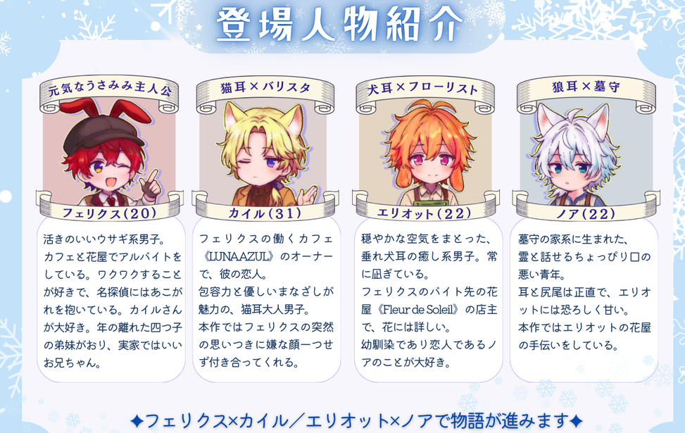 ルミナス島に住むウサギ耳の元気な青年・フェリクスは、恋人・カイルさんとのデート中に「不思議な花束」を拾う。