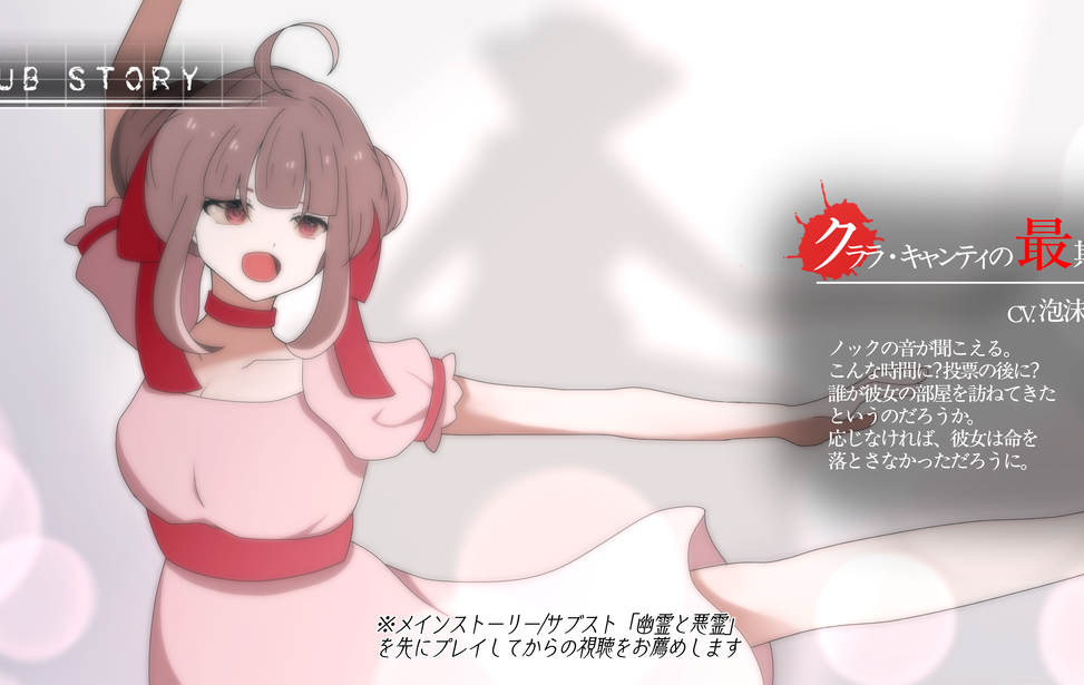 END数:3 バッドエンド/ノーマルエンド/トゥルーエンド(先に全てのストーリーの視聴をおすすめします&edが流れます)