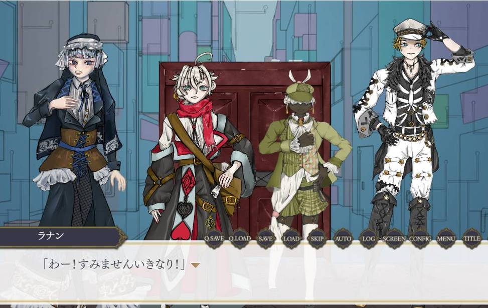 物語の展開上、一部の登場人物が刃物で傷つけられたり、命を落としたりする場面がございます。これらの暴力的な描写や、キャラクターの死に強い不快感を覚える可能性のある方は、あらかじめご了承の上プレイしていただきますようお願いいたします。