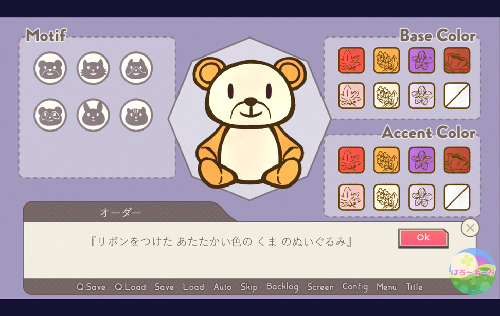 店主の「レイカ」とお茶を飲みながら、オーダーを元に素敵なぬいぐるみを作ってあげて下さい。