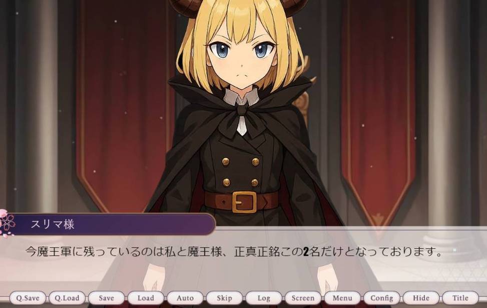 最弱魔族少女の新人魔王生活 web Language English中文(简体)中文(繁體)한국어РусскийDeutschFrançaisEspañolPortuguês日本語 プレイ時間:30分 主人公である最弱の魔族の女の子がひょんなことから新たな魔王になってしまい、1週間後にやってくる迎え撃つためにあれやこれや頑張る物語となっています。 ※キャラクターデザイン、一部の背景はPixAI、Gemini、ChatGPTの画像生成機能を利用し作成しています。 すべて表示折りたたむ ゲーム実況OK AI生成使用 ファンタジー コメディ ギャグ 魔王 コインで作品を応援する ブラウザでプレイゲームをプレイする windowsPC(Windows)版をDL starempty評価 star star star star star heartempty追加 twitter共有 コメント 応援コメント・ファンアートを気軽に投稿しよう! 投稿するには、ノベルゲームコレクションへの参加が必要です。 ノベルゲームコレクションへ参加する もっと見る
