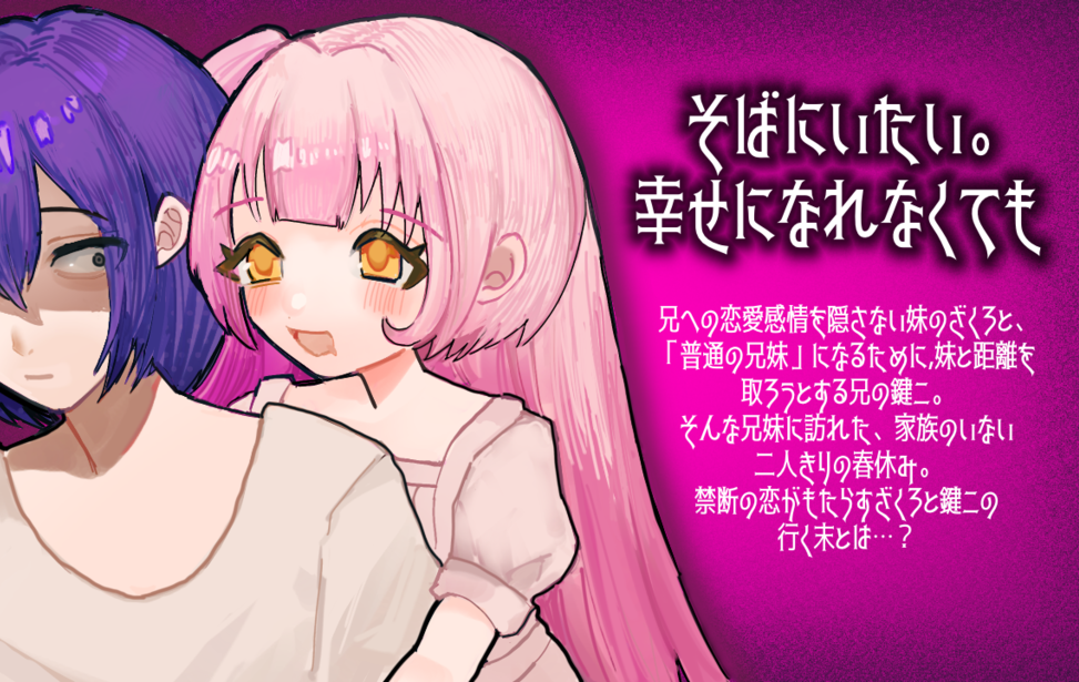 兄への恋愛感情を隠さない妹のざくろと、「普通の兄妹」になるために妹と距離を取ろうとする兄の鍵二。そんな兄妹に訪れた、家族のいない二人きりの春休み。禁断の恋がもたらす、ざくろと鍵二の行く末とは…?愛が地獄を呼ぶ純愛兄妹ADV、ここに開幕!