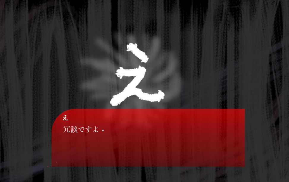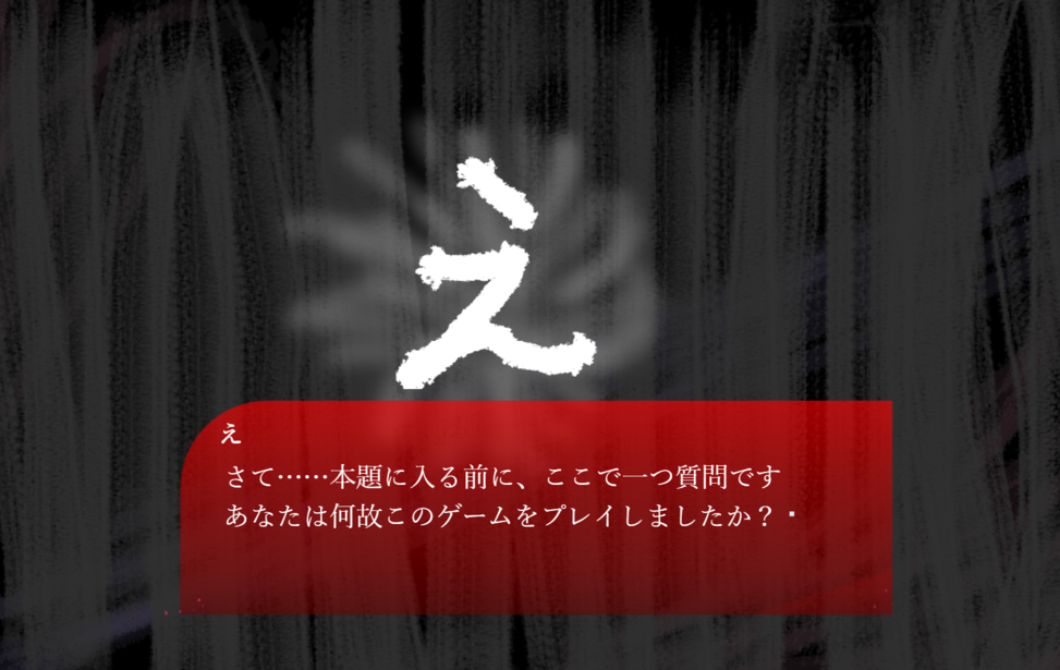 「え」 web Language English中文(简体)中文(繁體)한국어РусскийDeutschFrançaisEspañolPortuguês日本語 プレイ時間:15分 不思議な生命体(?)の「え」とお話しするだけのゲームです。 突如現れた「それ」は、一体何を話すのか…… ※処女作なので試験的な面が大きいです。 ・クレジット 【使用アプリ】 Photoshop VisualStudio2022 【使用素材】 画像:illustAC 音楽:DOVA-SYNDROME すべて表示折りたたむ ゲーム実況OK 意味不明 不思議 コインで作品を応援する ブラウザでプレイゲームをプレイする windowsPC(Windows)版をDL starempty評価 star star star star star heartempty追加 twitter共有 コメント 応援コメント・ファンアートを気軽に投稿しよう! 投稿するには、ノベルゲームコレクションへの参加が必要です。 ノベルゲームコレクションへ参加する もっと見る