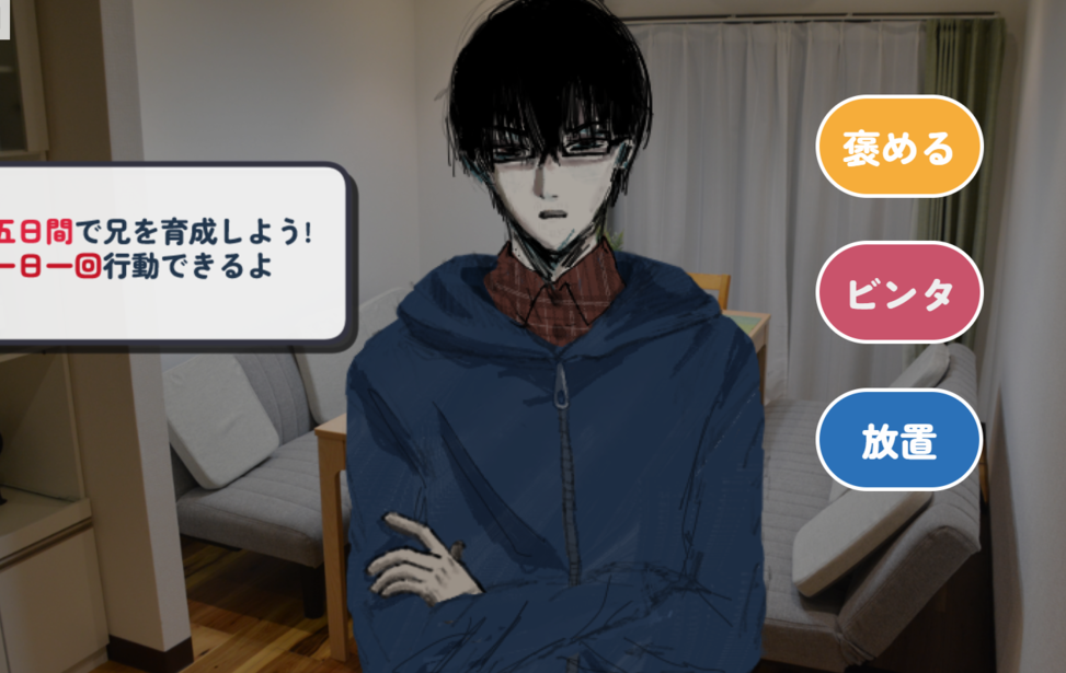 五日間で兄を“育成”し、行動次第で物語が分岐する短編ノベルゲームです。