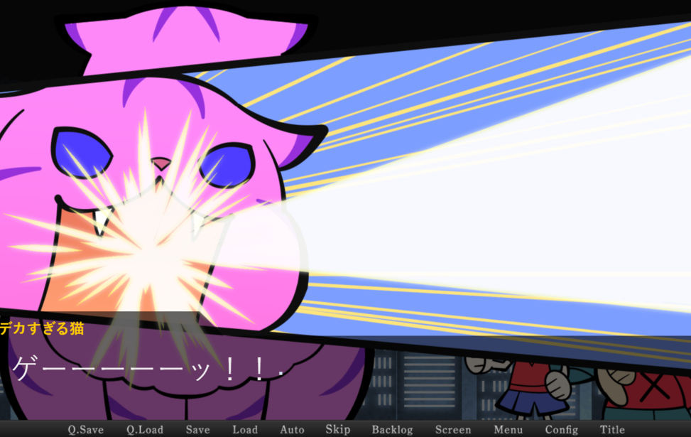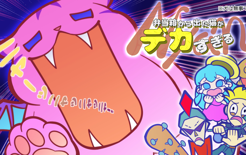 弁当箱に封印されていた巨大な猫が人間を襲いまくるモンスターパニック風バカゲー。