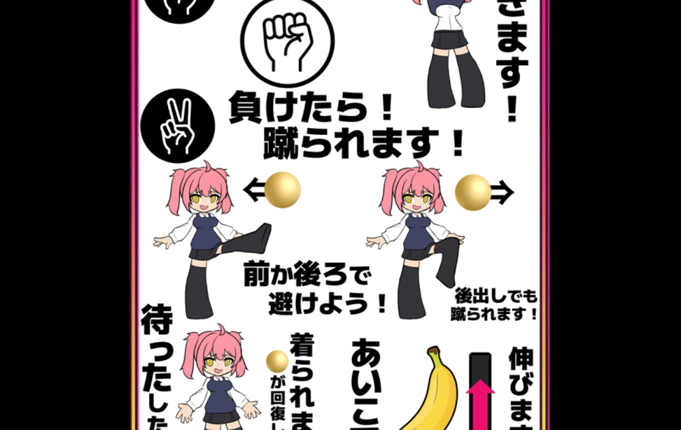 【作品概要】 じゃんけんや二択の駆け引き、ゲージ管理を行いながら競い合うじゃんけんゲームです。 レインボーに輝いたり、ピコピコ鳴ったりと、古(いにしえ)のゲームセンター的な雰囲気に仕上げました。