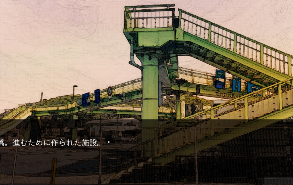 便利な歩道橋 web Language English中文(简体)中文(繁體)한국어РусскийDeutschFrançaisEspañolPortuguês日本語 プレイ時間:15分 一本道シュール後虚無ノベルゲーム(約15分) ・「帰る」を選ぶとタイトルに戻ります 事故表現や不謹慎なことが含まれているので合わない人はブラウザバックしてください。 すべて表示折りたたむ ゲーム実況OK 雰囲気 学校 歩道橋 キャラクター ホラー コインで作品を応援する ブラウザでプレイゲームをプレイする windowsPC(Windows)版をDL starempty評価 star star star star star heartempty追加 twitter共有 作者へチップを送る コメント 応援コメント・ファンアートを気軽に投稿しよう! 投稿するには、ノベルゲームコレクションへの参加が必要です。 ノベルゲームコレクションへ参加する もっと見る