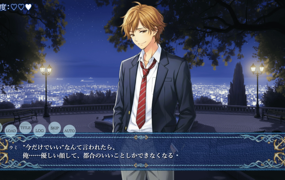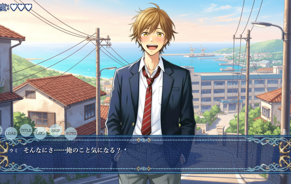 港町を舞台に描かれる、先輩と後輩のBLノベルゲーム。