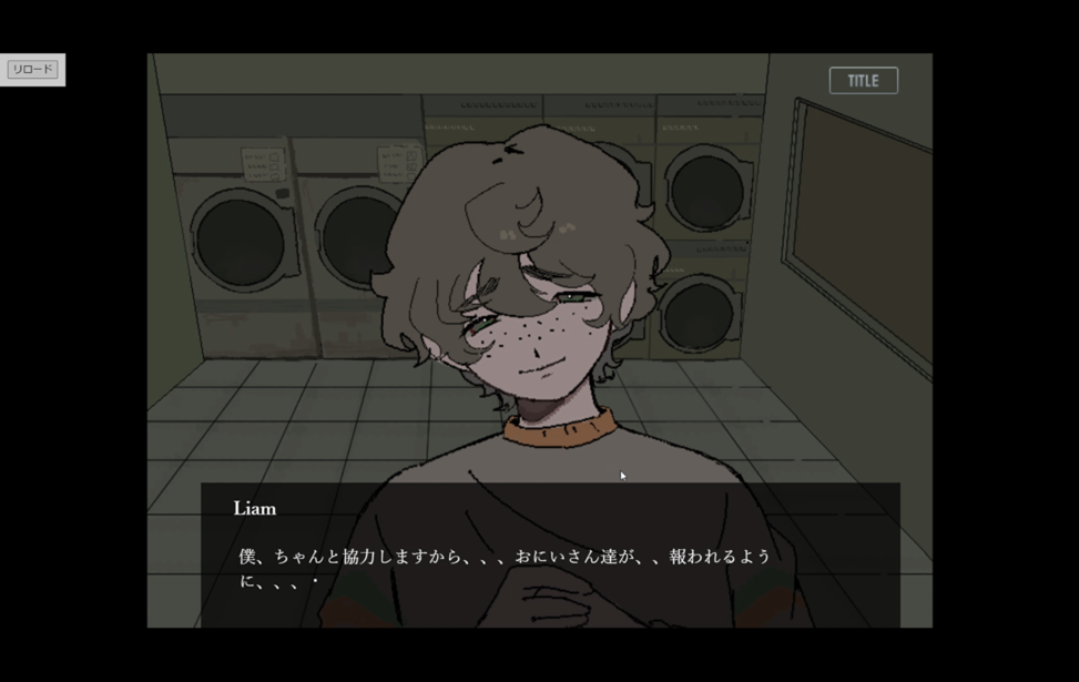 ランドリーに行こう。 web Language English中文(简体)中文(繁體)한국어РусскийDeutschFrançaisEspañolPortuguês日本語 プレイ時間:30分 コインランドリーにいる三人組の男の謎がわかっていくゲームです。 こちらの物語はフィクションです。登場する人物、団体、事件とは一切関係ありません。 すべて表示折りたたむ ゲーム実況OK サイコホラー 探索ゲーム コインで作品を応援する ブラウザでプレイゲームをプレイする windowsPC(Windows)版をDL starempty評価 star star star star star heartempty追加 twitter共有 コメント 応援コメント・ファンアートを気軽に投稿しよう! 投稿するには、ノベルゲームコレクションへの参加が必要です。 ノベルゲームコレクションへ参加する もっと見る
