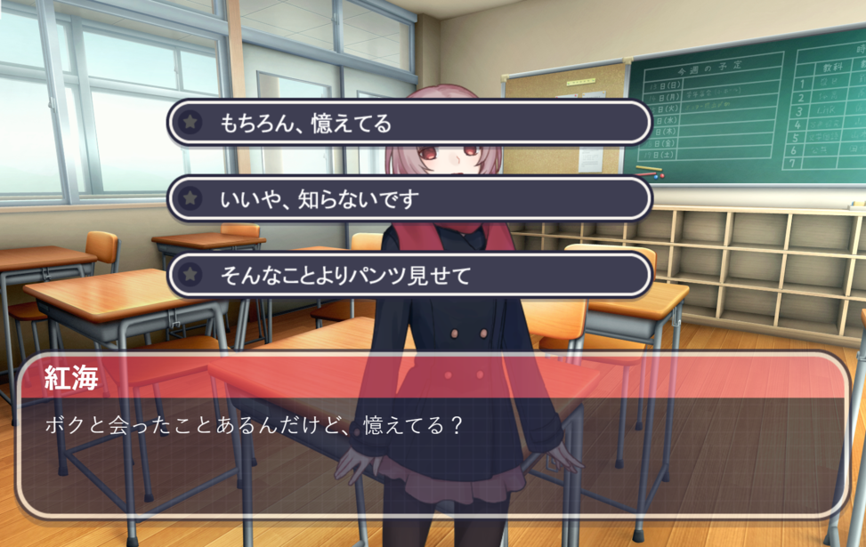 ヤンデレ少女たちとの約束を憶えてなきゃ即データリセットのコミュニケーションADV web Language English中文(简体)中文(繁體)한국어РусскийDeutschFrançaisEspañolPortuguês日本語 プレイ時間:15分 あなたは転校生。しかし、あなたと結ばれる約束をしたと言い放つ少女が何人も・・・。 漢であるならば、誓った約束は死んでも守るべきでしょう。 もちろん、人生というのは一度きり。死んだら、途中からやり直すことなんて不可能です。 ということなので、一度も不正解を引くことなく、転校初日を乗り切ってください。 エンディングは1つ。無事に生き延びて飯にありつける以上のエンディングなんてありません。 すべて表示折りたたむ ゲーム実況OK 恋愛 ヤンデレ パーマデス コインで作品を応援する ブラウザでプレイゲームをプレイする windowsPC(Windows)版をDL starempty評価 star star star star star heartempty追加 twitter共有 コメント 応援コメント・ファンアートを気軽に投稿しよう! 投稿するには、ノベルゲームコレクションへの参加が必要です。 ノベルゲームコレクションへ参加する もっと見る