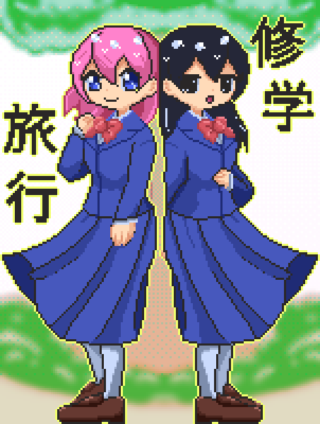 修学旅行 ~性格不安定なまみちゃんと僕の物語~全体的にとても懐かしくて古き良き時代を思い出すようなゲームのオマージュがたくさんあって笑っちゃいましたw 楽しかったです! @ネタバレ開始 性格不安定…と聞いてなんか昔そんなゲームやった気が…?あれドット絵もこんな感じだったような…?とおもっていたらエレベーターのとこであぁ!!っと思い出しましたw なるほどなるほど…とにやにやがずっと止まらなかったですw イラストは左がまみちゃんで右が主人公・・・ではなく右はさいこうEND終わった次の周にめちゃかわビジュで出てきたモブこですw黒髪ロングジト目クリみたいな口で出てきて、かっかわいー!!!と思って爆速で攻略しに行きましたw ランダム生成すごいですね!主人公のビジュも変えられるのも楽しかったしずっと面白かったです!! -